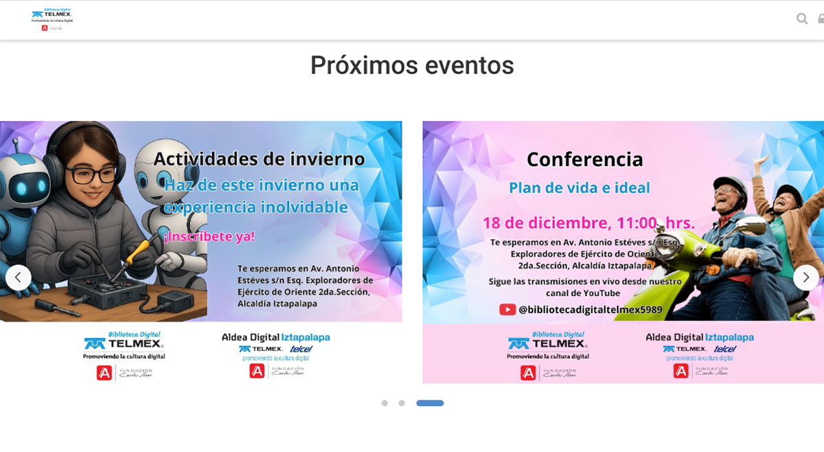 Asimismo, puedes consultar la oferta presencial disponible en Aldea Digital Iztapalapa y Casa TELMEX SEMAR.