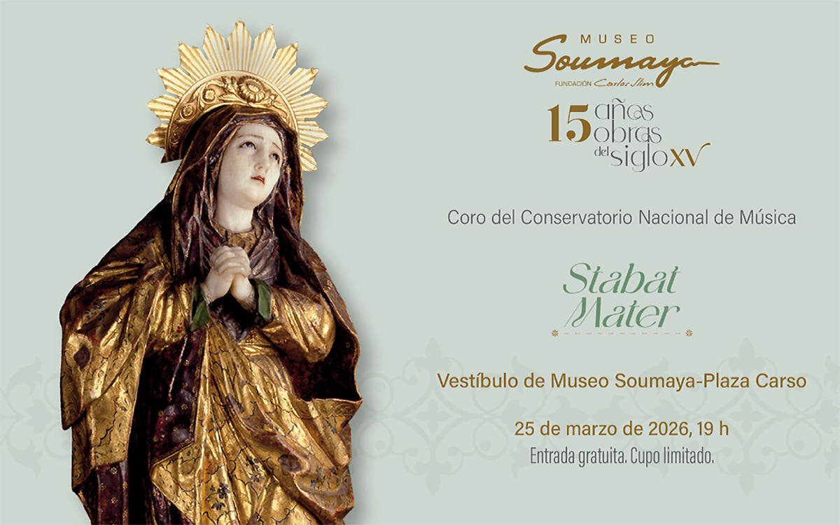 Como parte de la serie de actividades que brinda el Museo Soumaya de Fundación Carlos Slim, se extiende una invitación al público en general para que asista este miércoles 25 de marzo al concierto “Stabat Mater”, dentro del marco del programa “15 años, 15 obras del siglo XV” del recinto.