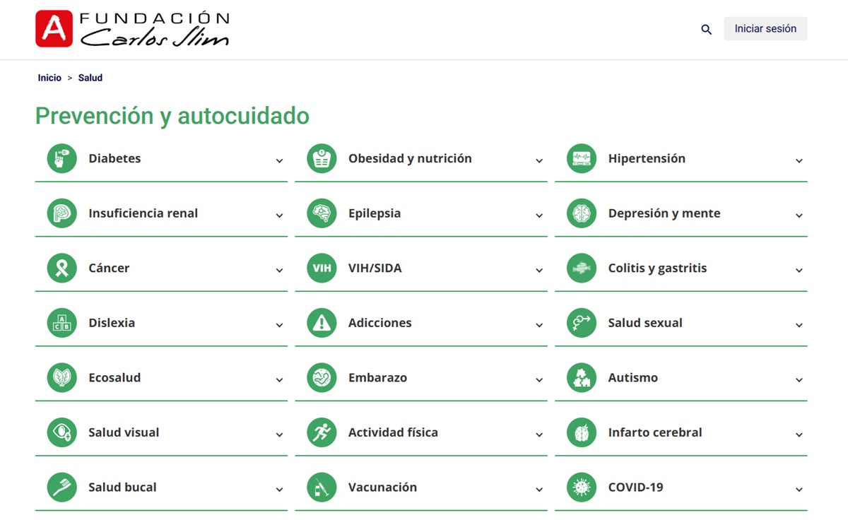 Ante ello, Fundación Carlos Slim (FCS), mediante la sección Salud de su plataforma Aprende.org, invita a las personas a visitar su apartado “Prevención y autocuidado”, en donde pueden consultar información respaldada por médicos y expertos en salud relacionada con diversas enfermedades y condiciones médicas. Esto es posible gracias a una serie de contenidos multimedia de gran calidad, que incluyen textos sobre varios temas en salud.