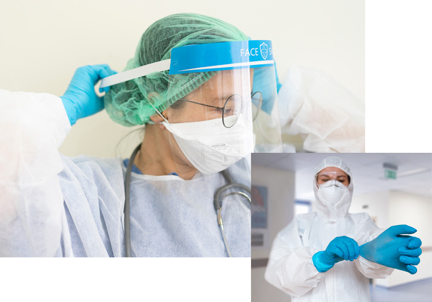 Equipo de Protección Personal para personal de salud: mascarillas N95; mascarillas quirúrgicas; gafas de seguridad estándar de policarbonato; guantes desechables; batas, gorros y cubrezapatos quirúrgicos desechables.