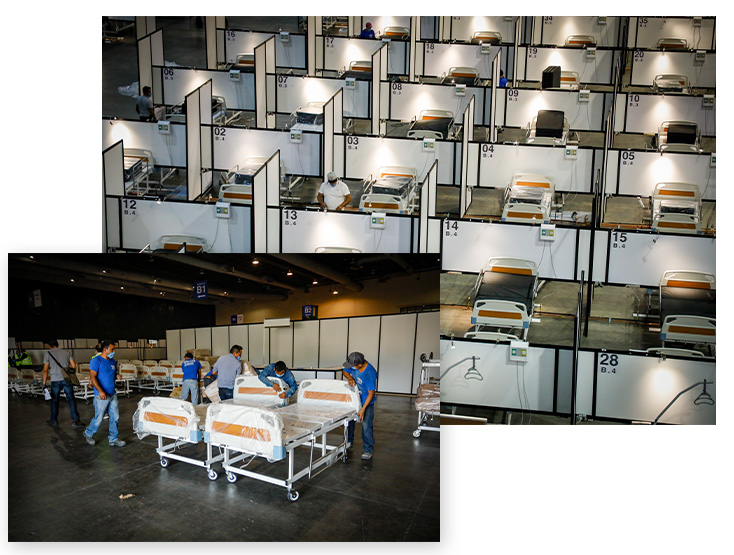 Más de 46 mil m2 reconvertidos que aportan al sistema de salud en México 1,305 camas para la atención de pacientes con COVID-19