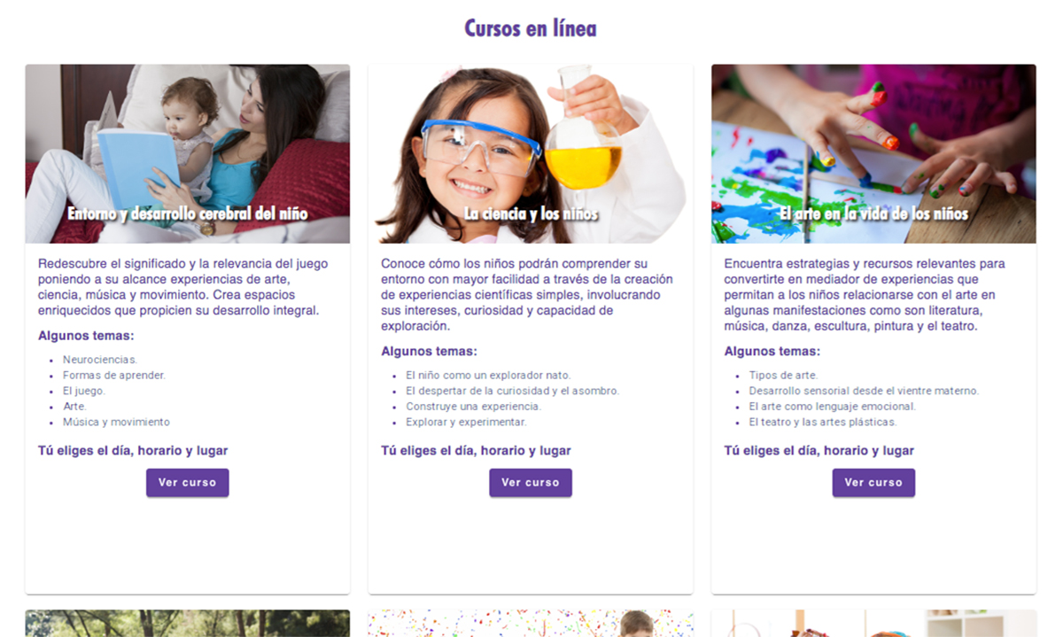 El día de hoy les hablaremos sobre el primer tema de su contenido Educación Inicial, llamado “Capacitación para padres y Educadores”, en donde es posible acceder a una serie de talleres, cursos y conferencias gratuitos en línea, que son impartidos por el programa “Educación Inicial” de Fundación Carlos Slim y están dirigidos a padres de familia, cuidadores y docentes, todos centrados en la promoción del desarrollo infantil, la educación durante la primera infancia, la creación de relaciones significativas para los niños, la prevención del abuso y más.