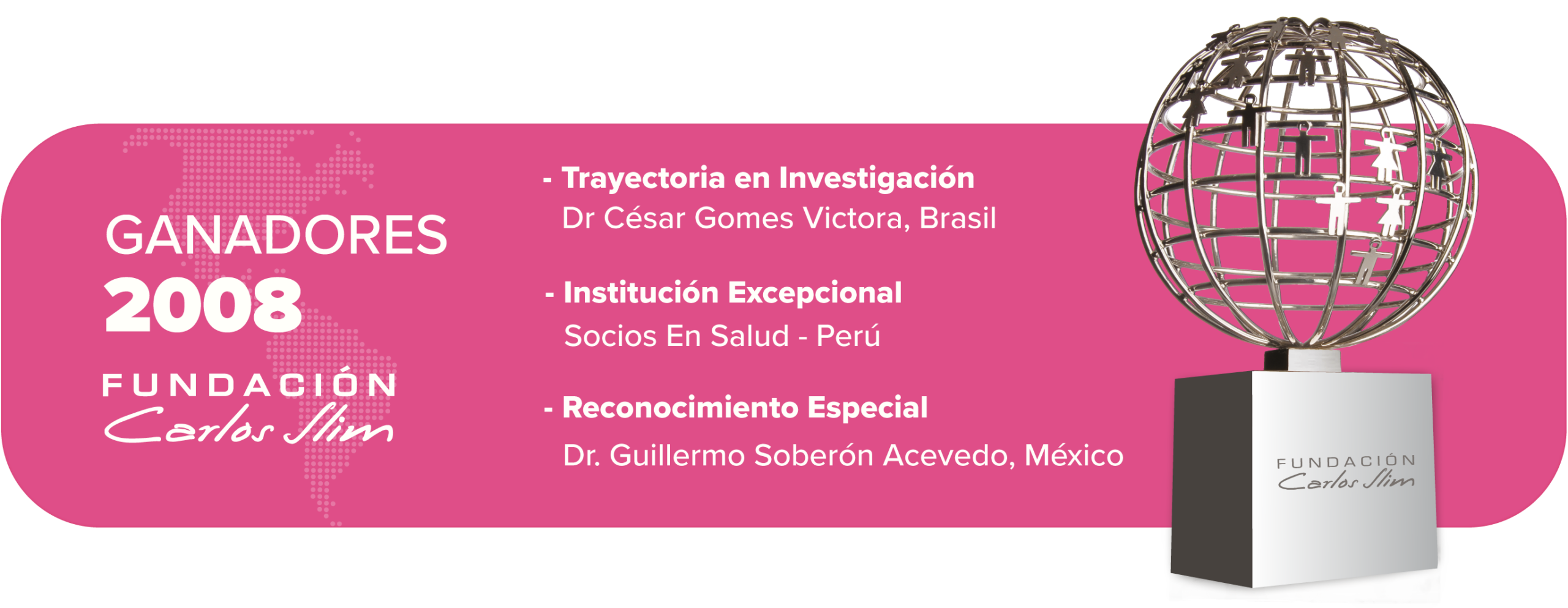 Fundación Carlos Slim felicita a los ganadores de los Premios Carlos Slim en Salud 2008, en las categorías de Innovación a la mejora de los sistemas de salud, Trayectoria en Investigación y a Institución Excepcional.