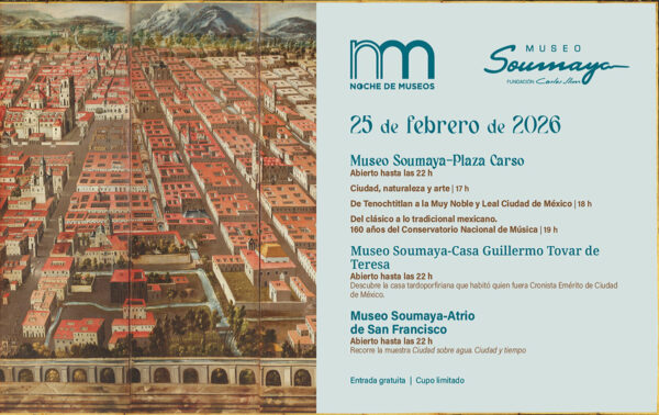 Publicado el 23 de febrero de 2026 a las 2:28 pm. 🔊 Escucha el artículo noche-museos-soumaya-febrero-2026 TE PUEDE INTERESAR Fundación Carlos Slim y el Instituto Broad del MIT y Harvard fortalecen cooperación en medicina genómica Accede al apartado Abogados con costo de la plataforma AccesoLatino.org Cápsula La Puerta del Infierno | El viaje en Museo Soumaya