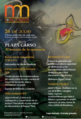 Publicado el 18 de julio de 2017 a las 1:14 pm. 🔊 Escucha el artículo Noche de museos_Soumaya TE PUEDE INTERESAR Fundación Carlos Slim y el Instituto Broad del MIT y Harvard fortalecen cooperación en medicina genómica Accede al apartado Abogados con costo de la plataforma AccesoLatino.org Cápsula La Puerta del Infierno | El viaje en Museo Soumaya