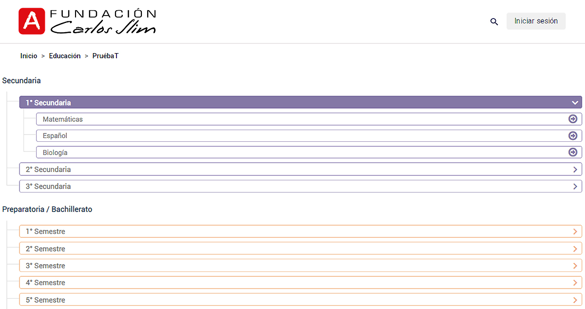 La plataforma Aprende.org de Fundación Carlos Slim ofrece el apartado Educación en su sección del mismo nombre, gracias al cual los usuarios pueden adquirir conocimientos sobre educación inicial, básica, media y superior.