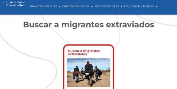 Publicado el 20 de diciembre de 2022 a las 11:57 am. 🔊 Escucha el artículo buscar-migrantes-extraviados TE PUEDE INTERESAR Fundación Carlos Slim y el Instituto Broad del MIT y Harvard fortalecen cooperación en medicina genómica Accede al apartado Abogados con costo de la plataforma AccesoLatino.org Cápsula La Puerta del Infierno | El viaje en Museo Soumaya